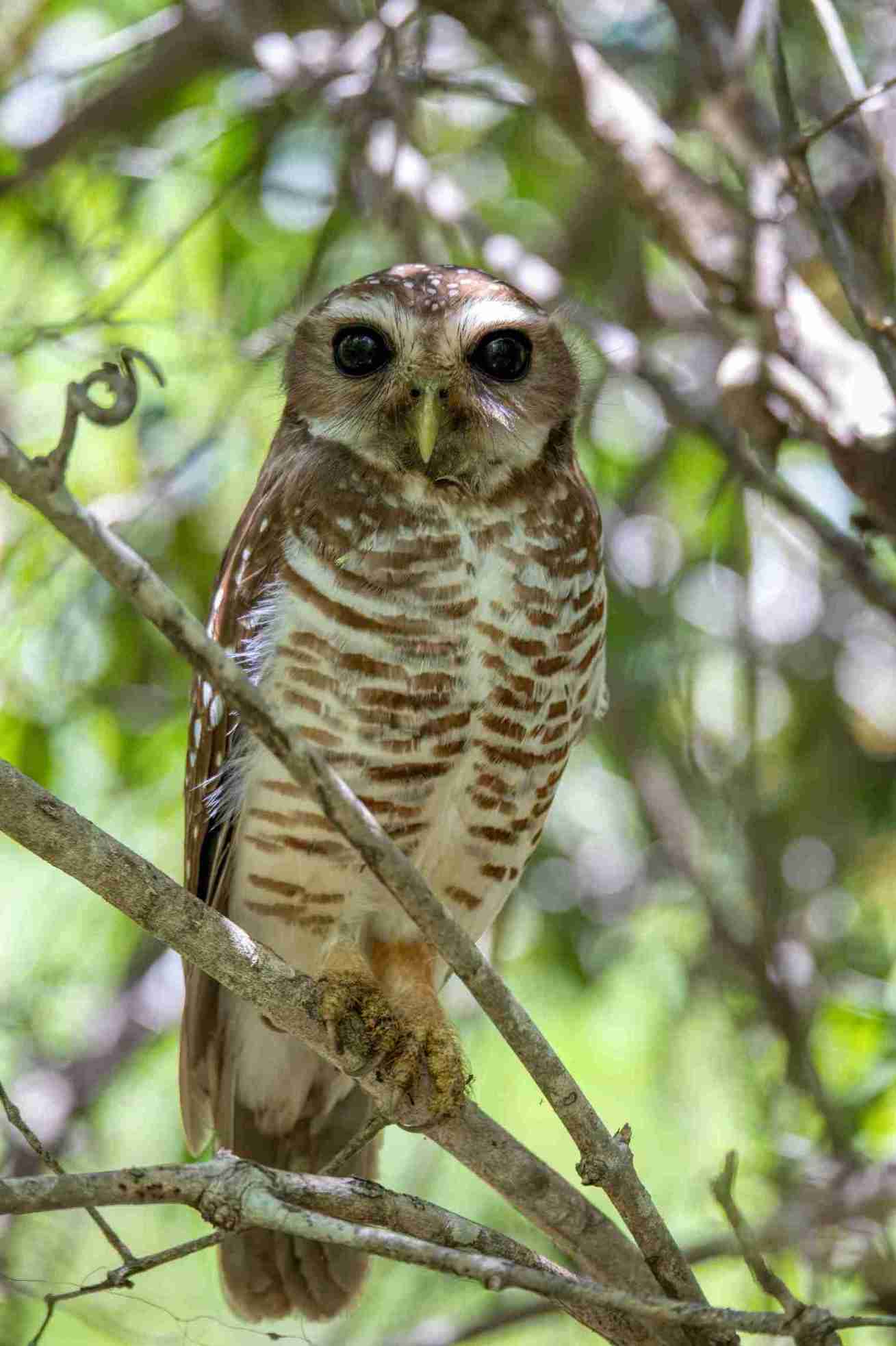 Weißbraueneule auf einem Ast – geheimnisvoller Wächter des Waldes